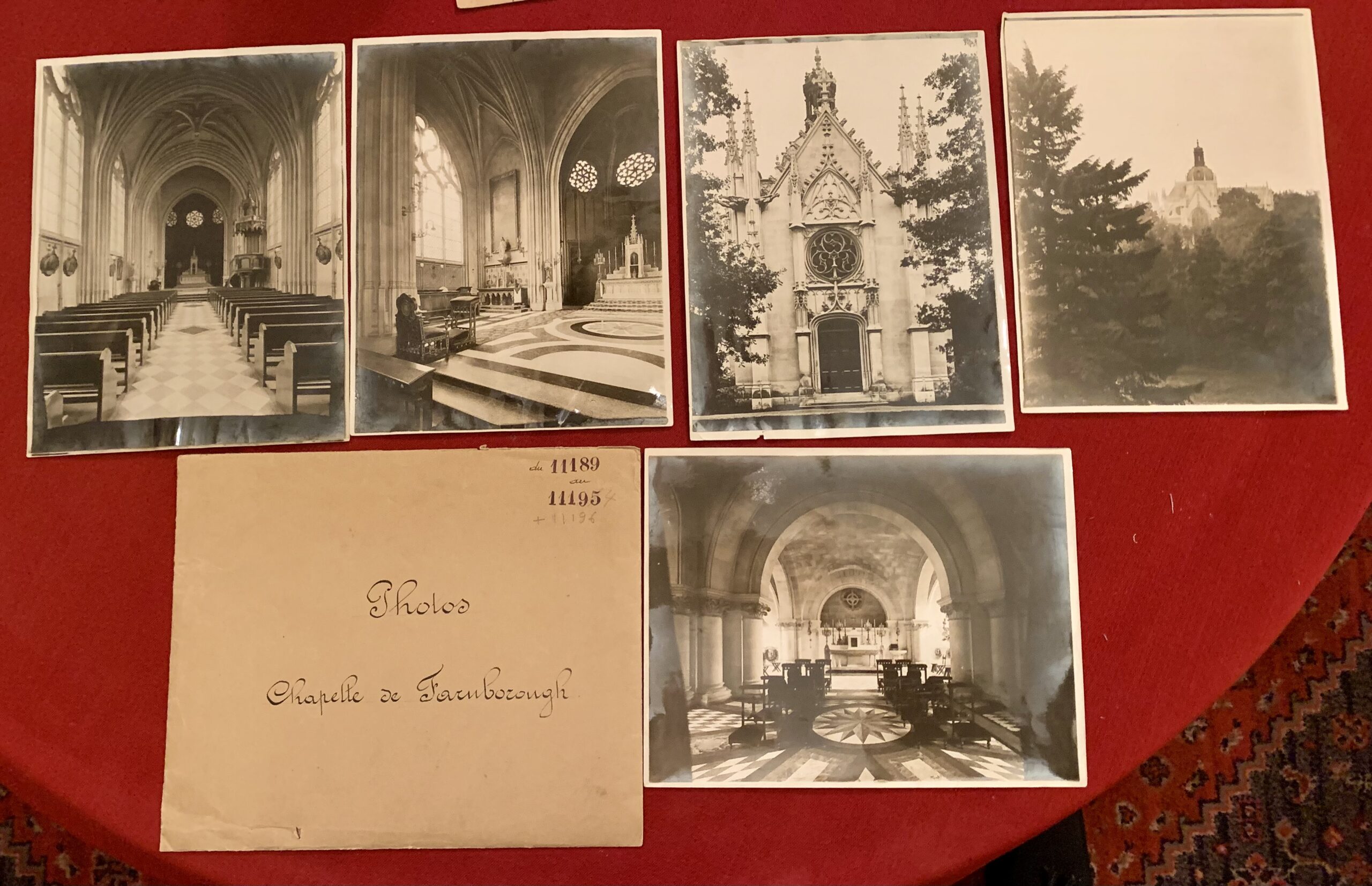 Chapelle de Farnborough suite de 5 photos 21,5 x 16,5 cm provenant des collections impériales dans une enveloppe manuscrite :