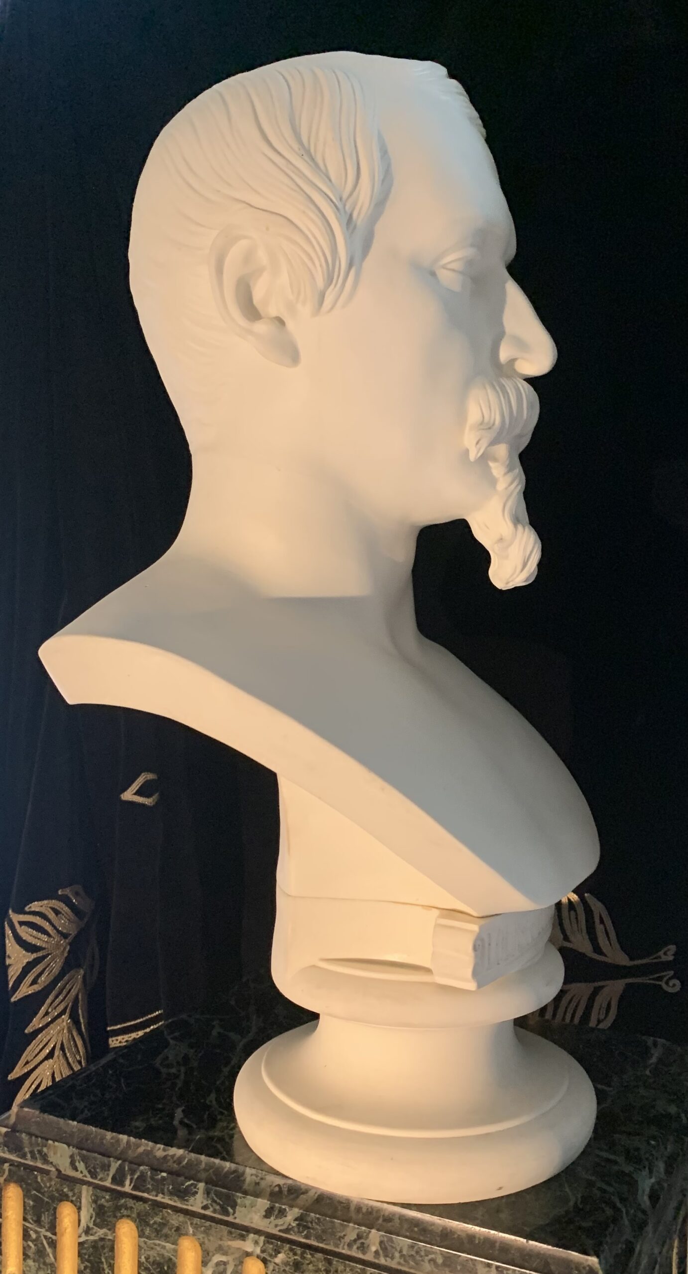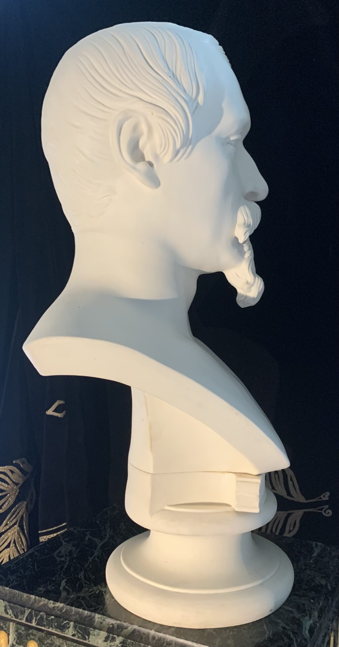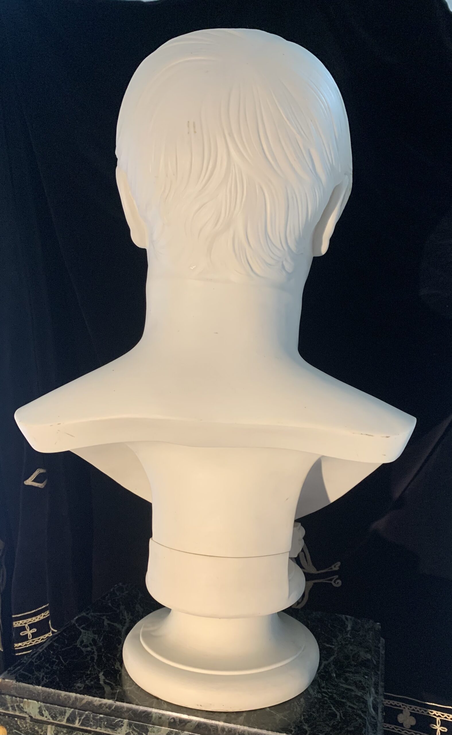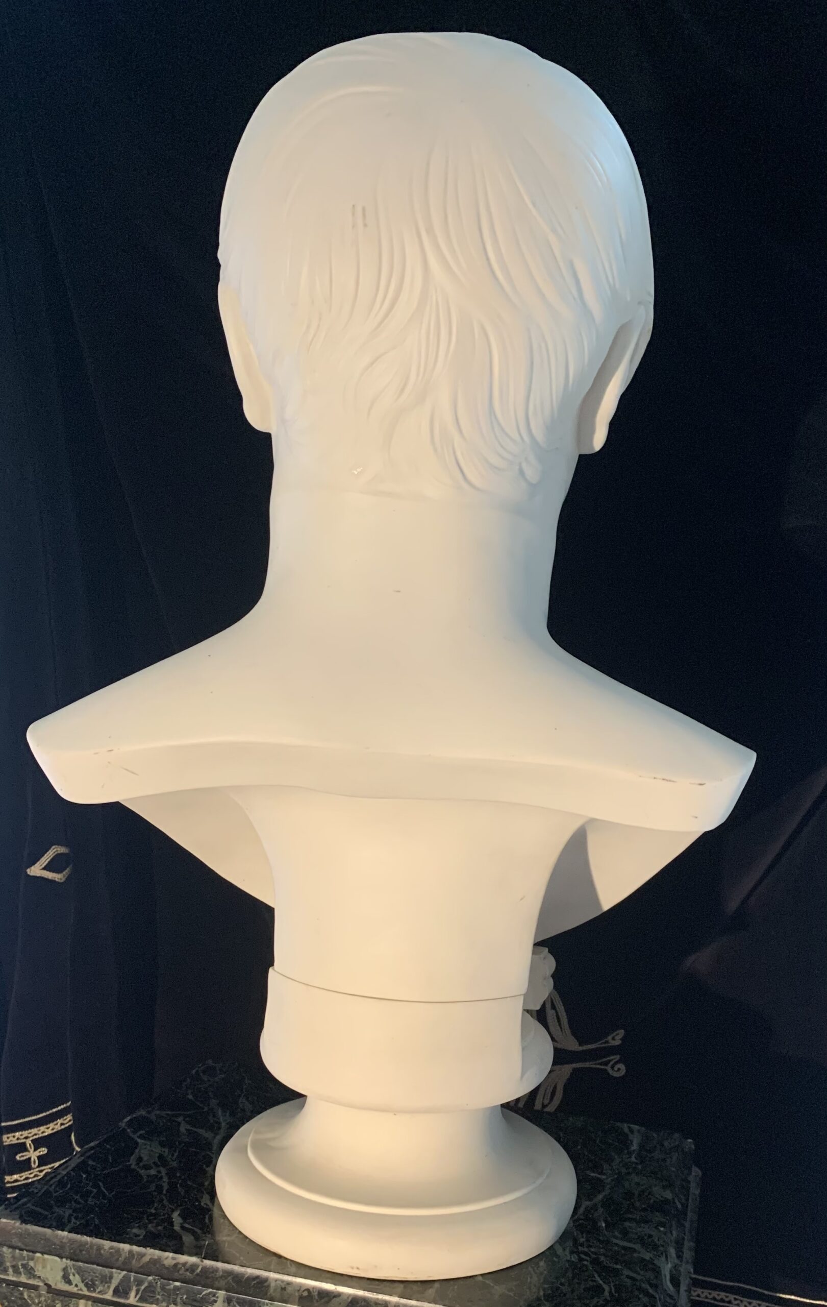 Louis Napoléon buste à l’antique sur piédouche en biscuit de Sèvres titré, signé et daté sur le coté droit A. BARRE Fit (Fecit= il l’a fait) 1852. Marque en creux .