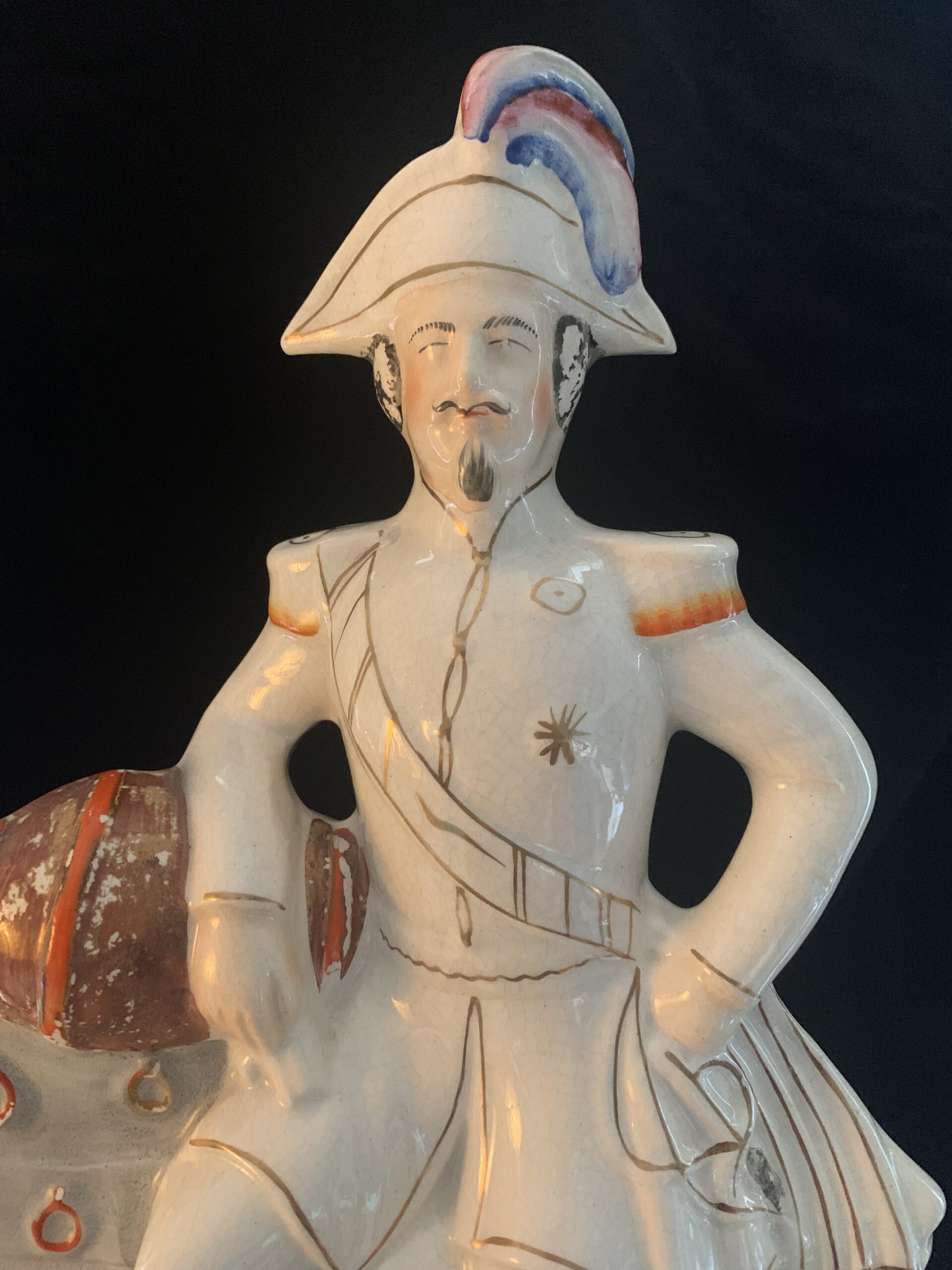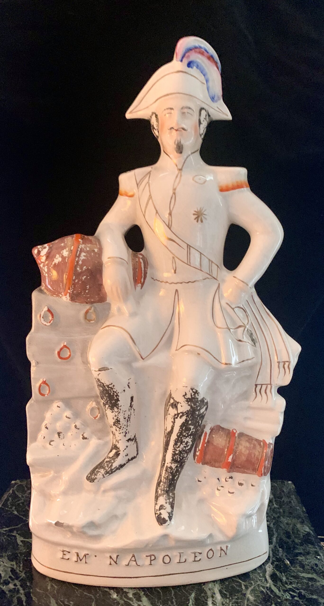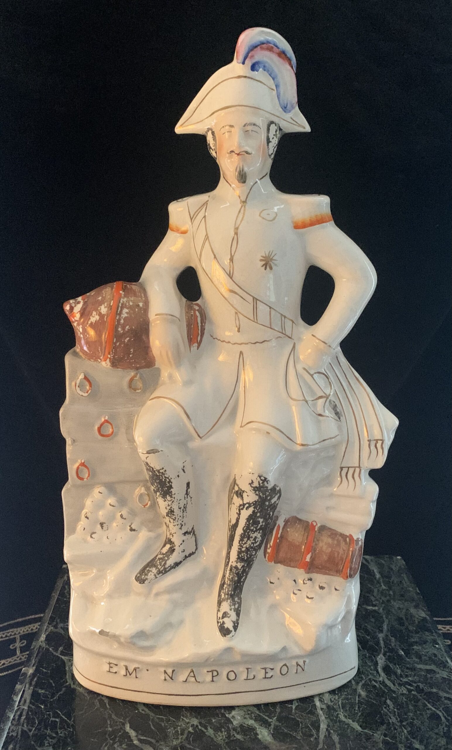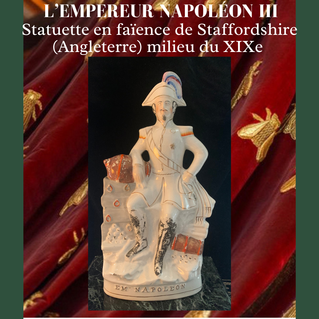 ANGLETERRE, STAFFORSHIRE L’Empereur Napoléon III en pied en faïence polychrome et or. Milieu du XIXe