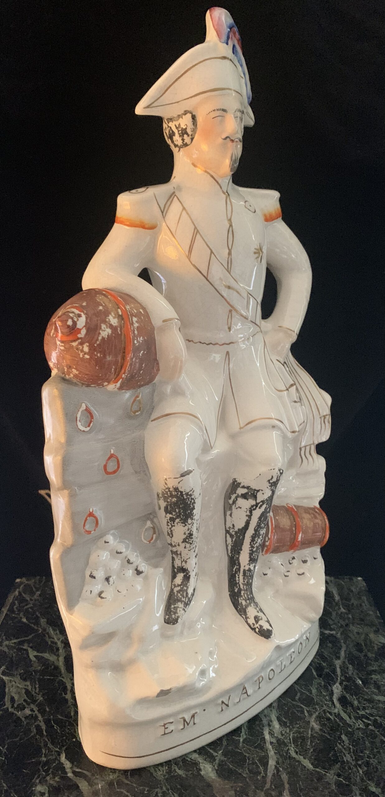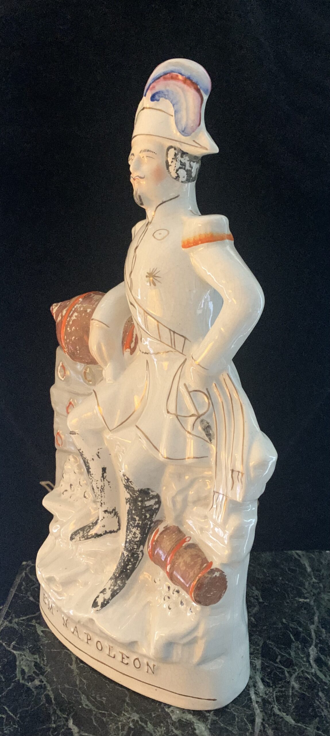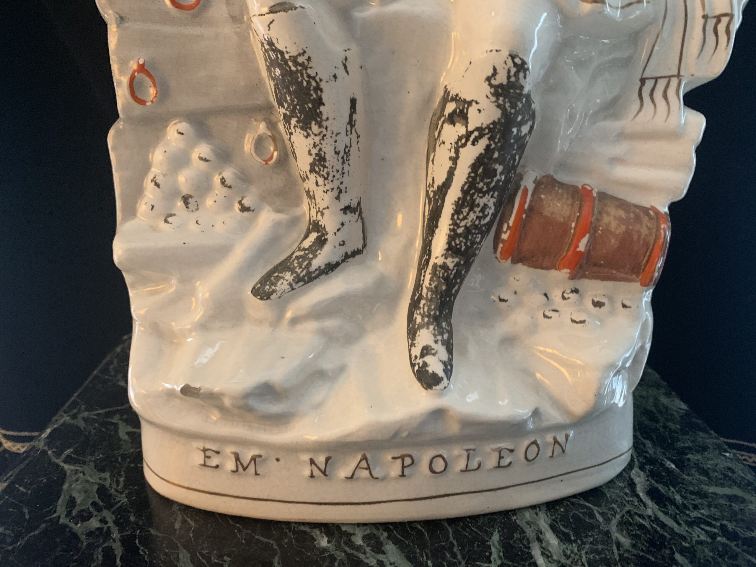 ANGLETERRE, STAFFORSHIRE L’Empereur Napoléon III en pied en faïence polychrome et or. Milieu du XIXe