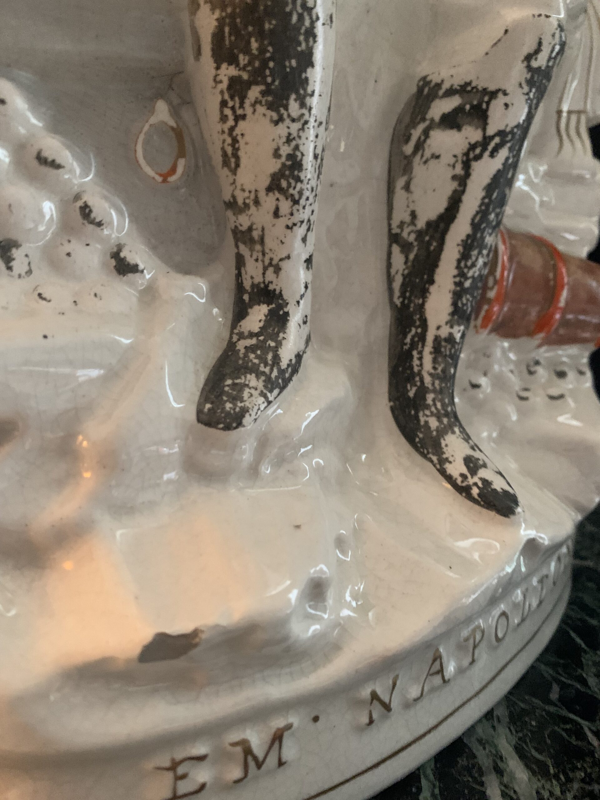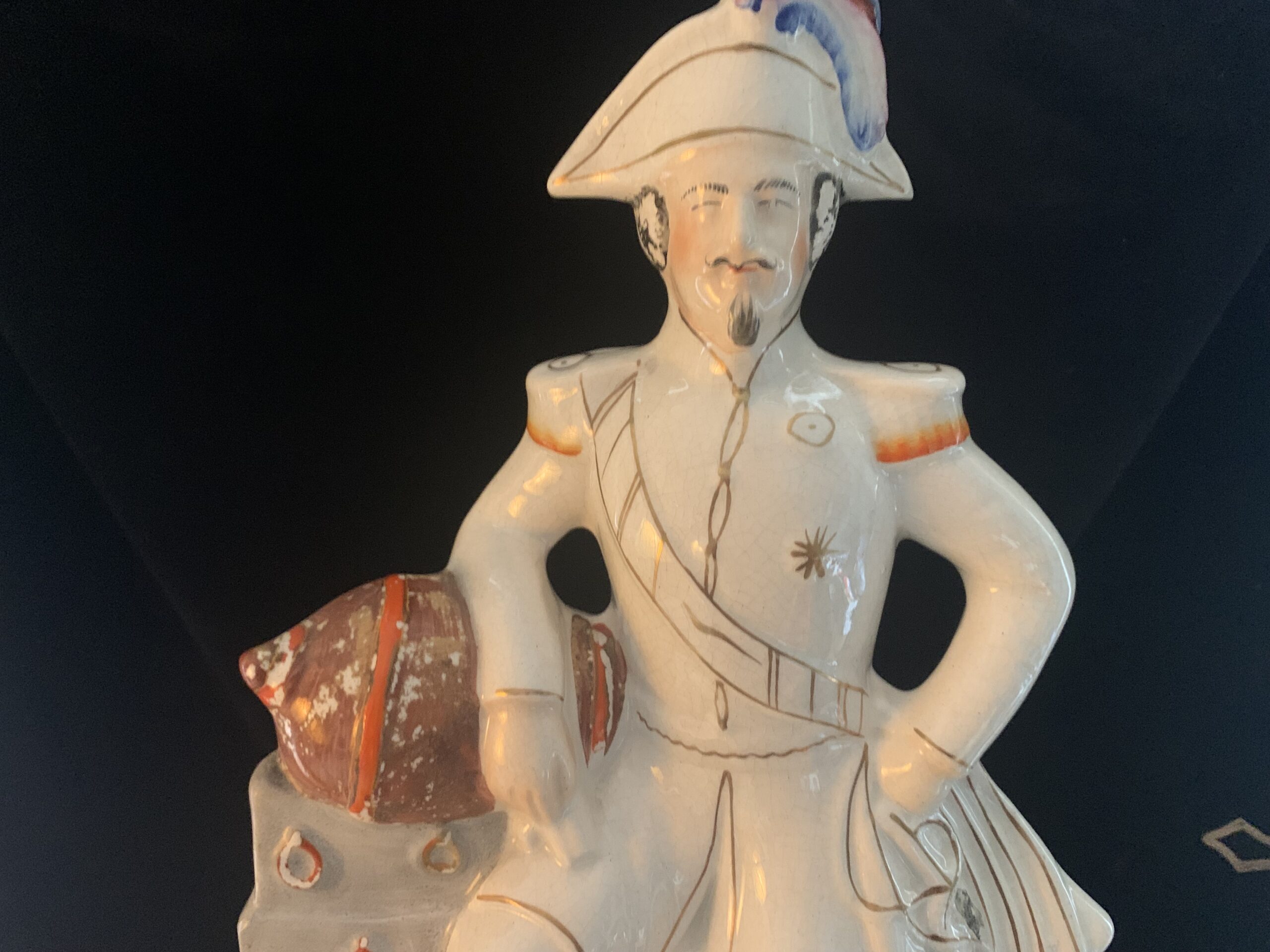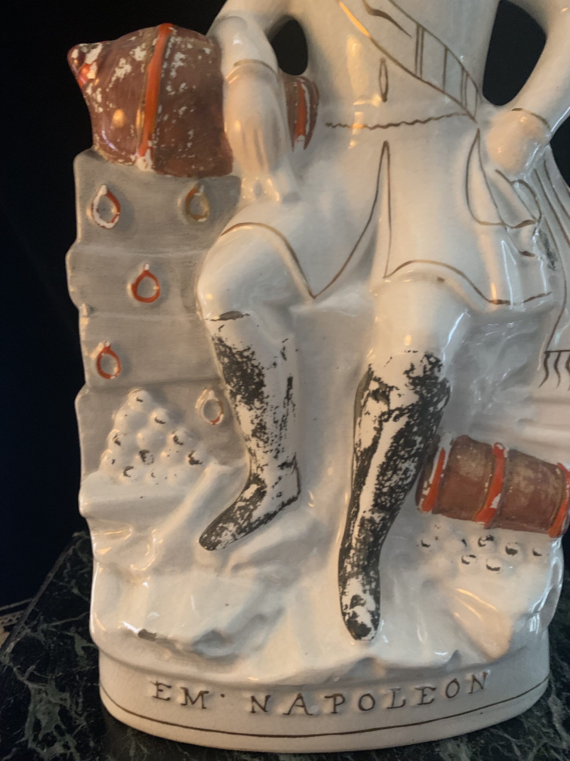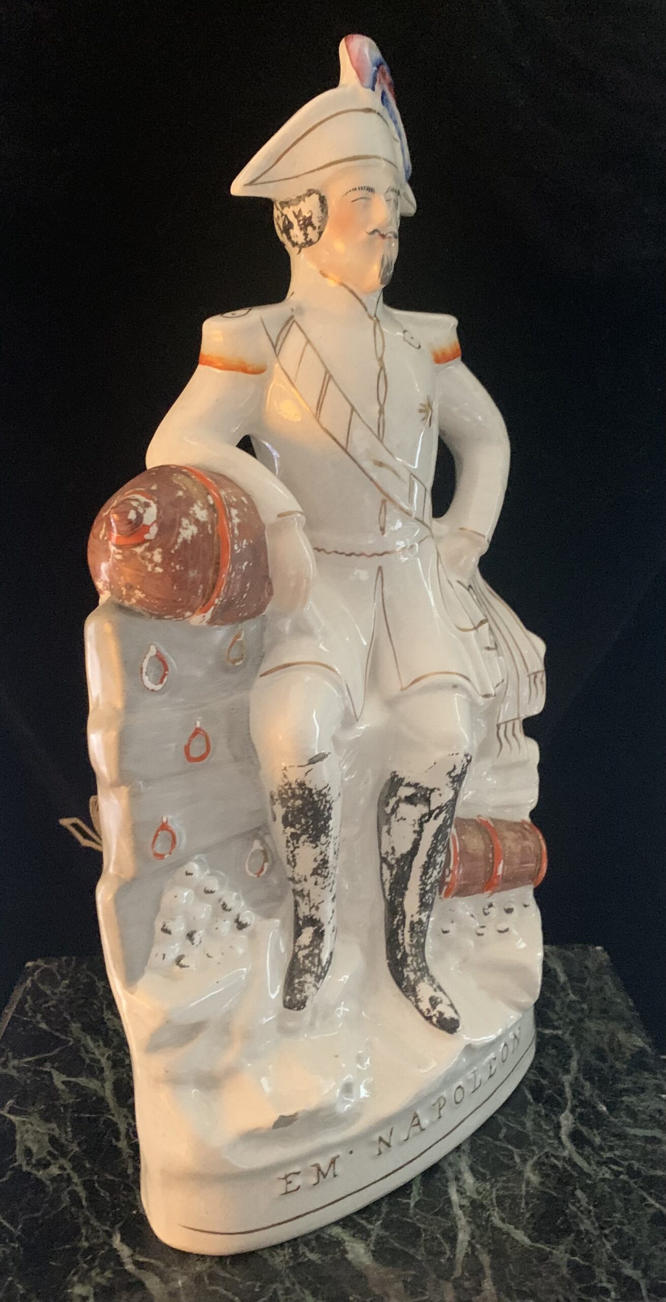 ANGLETERRE, STAFFORSHIRE L’Empereur Napoléon III en pied en faïence polychrome et or. Milieu du XIXe