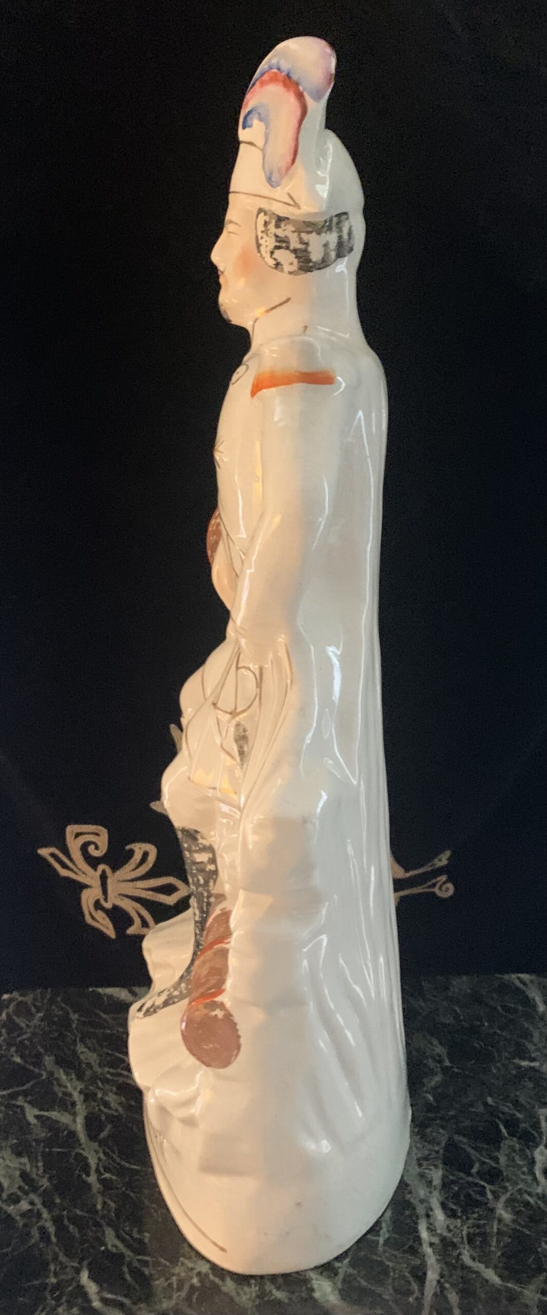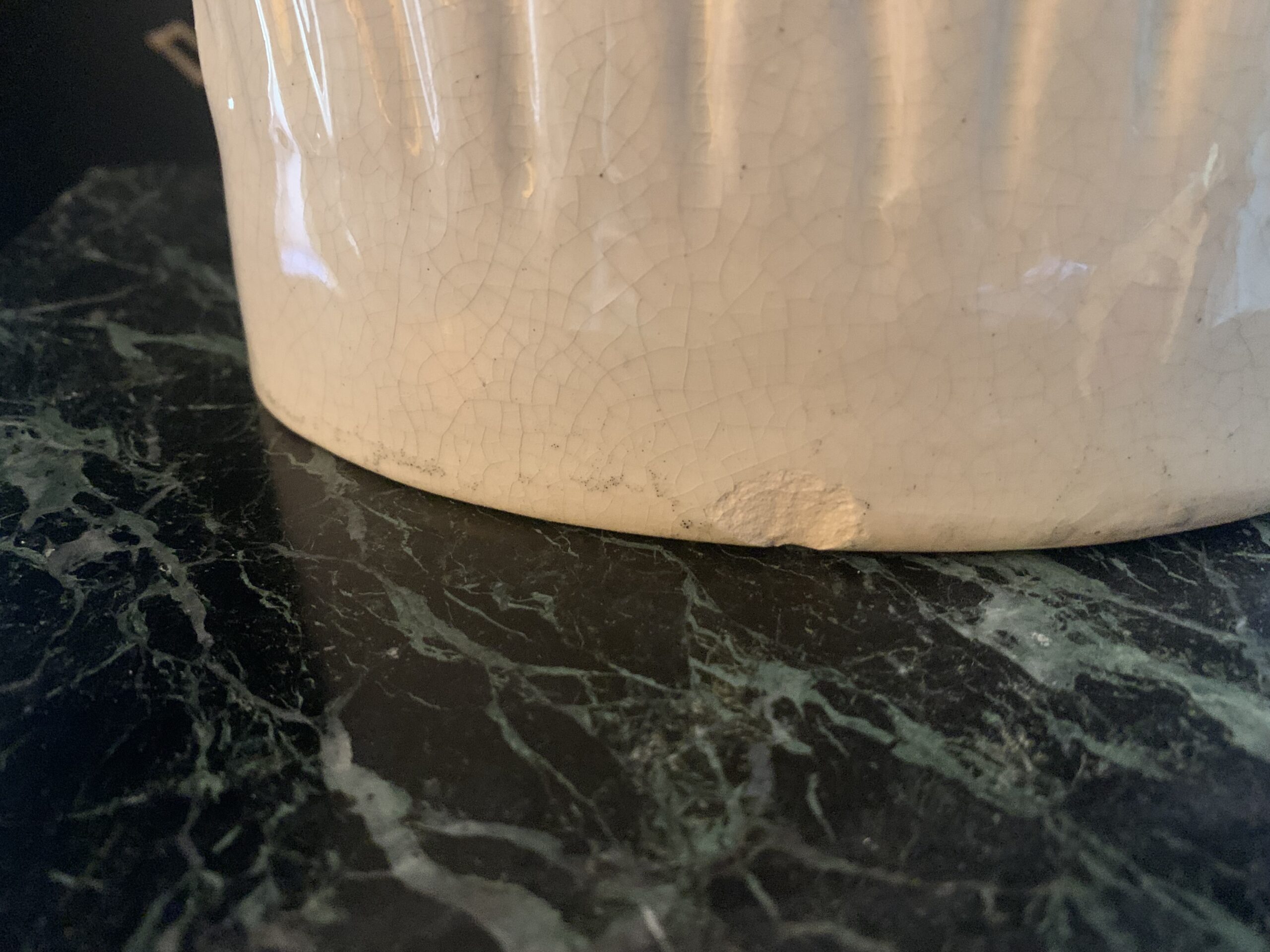 ETAT: Bel état général, quelques égrenures et petits écats, taches d’usage, petits fêles et défauts de cuisson, usures d’usage sur la peinture éparse