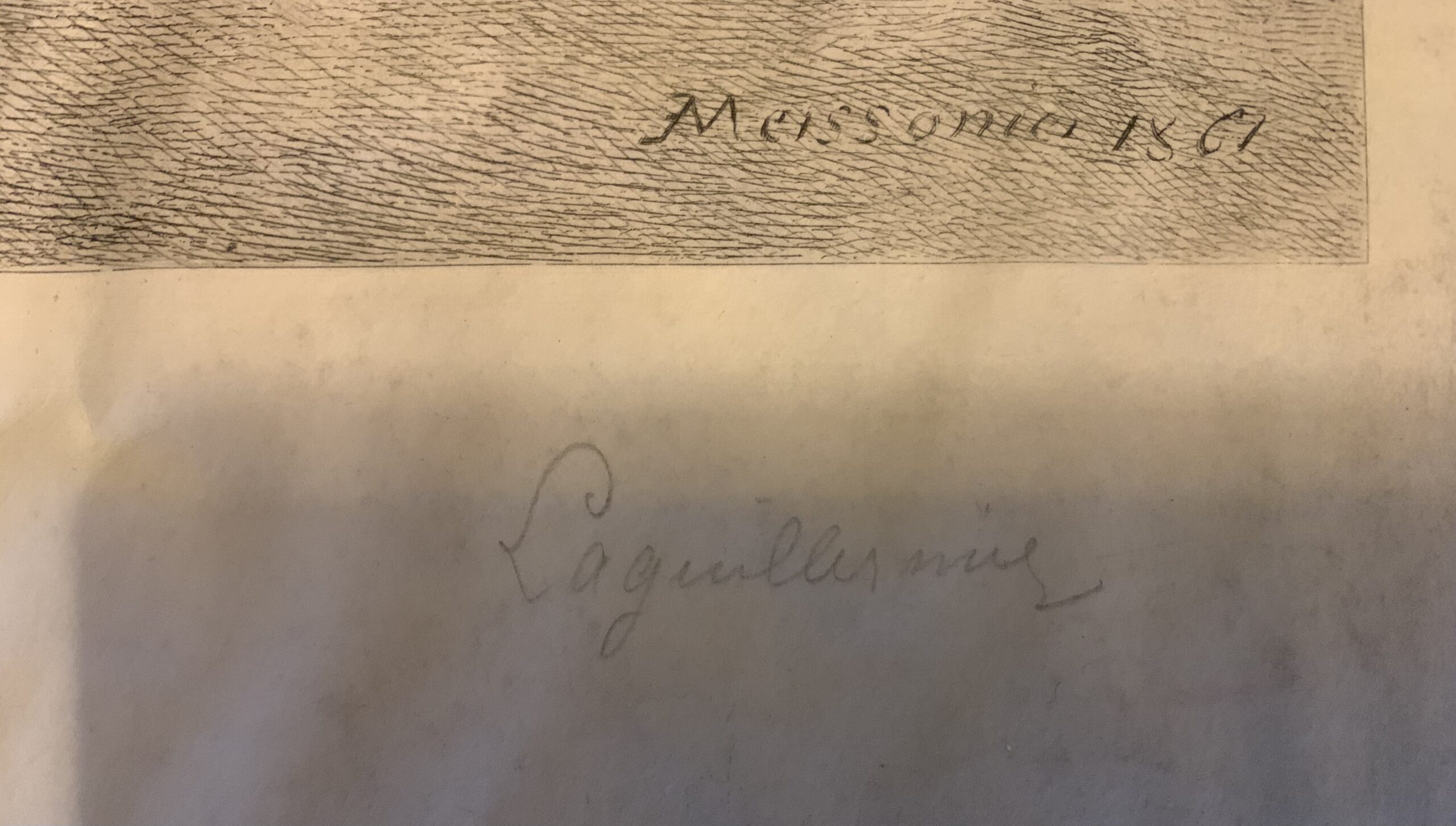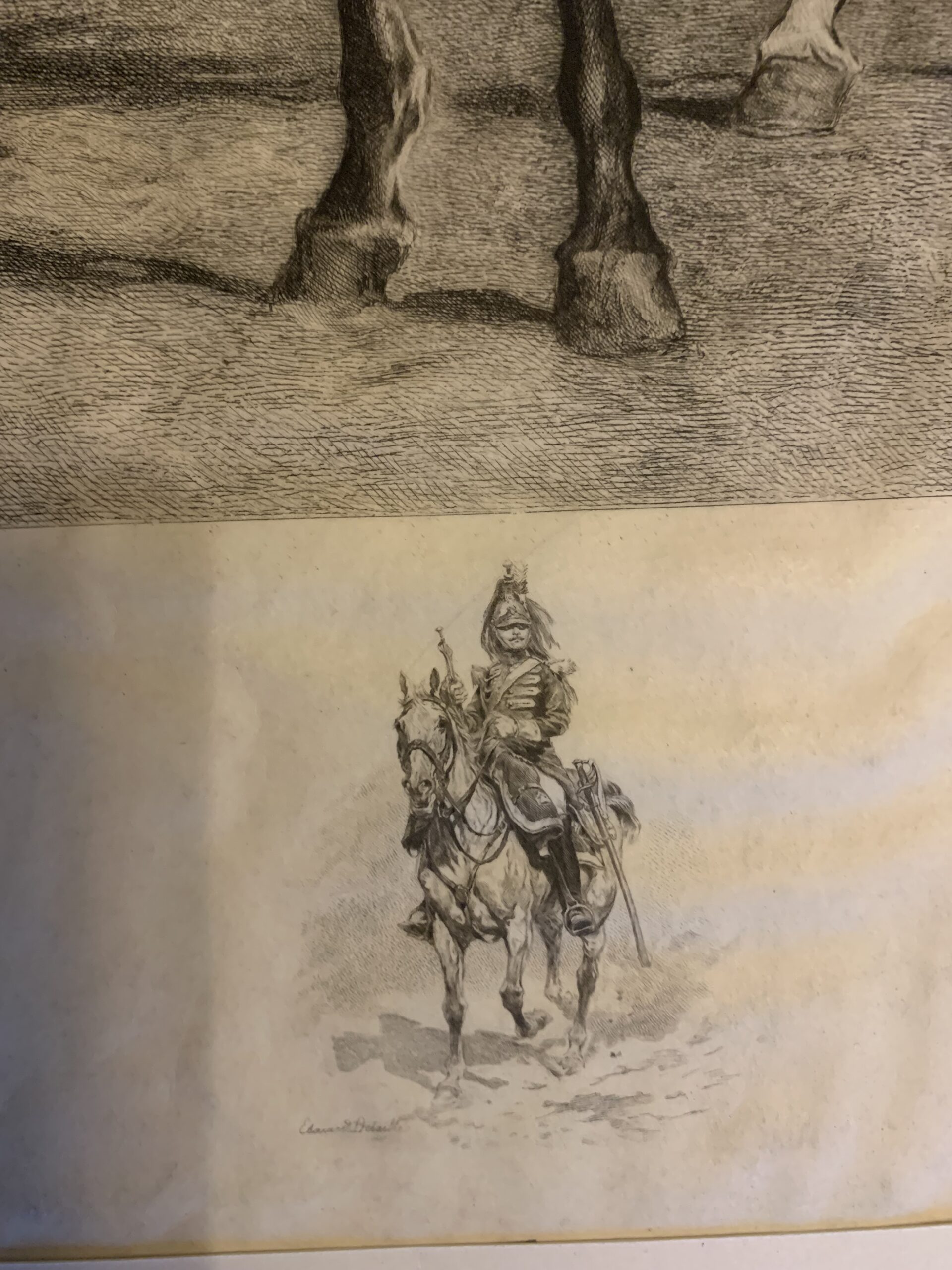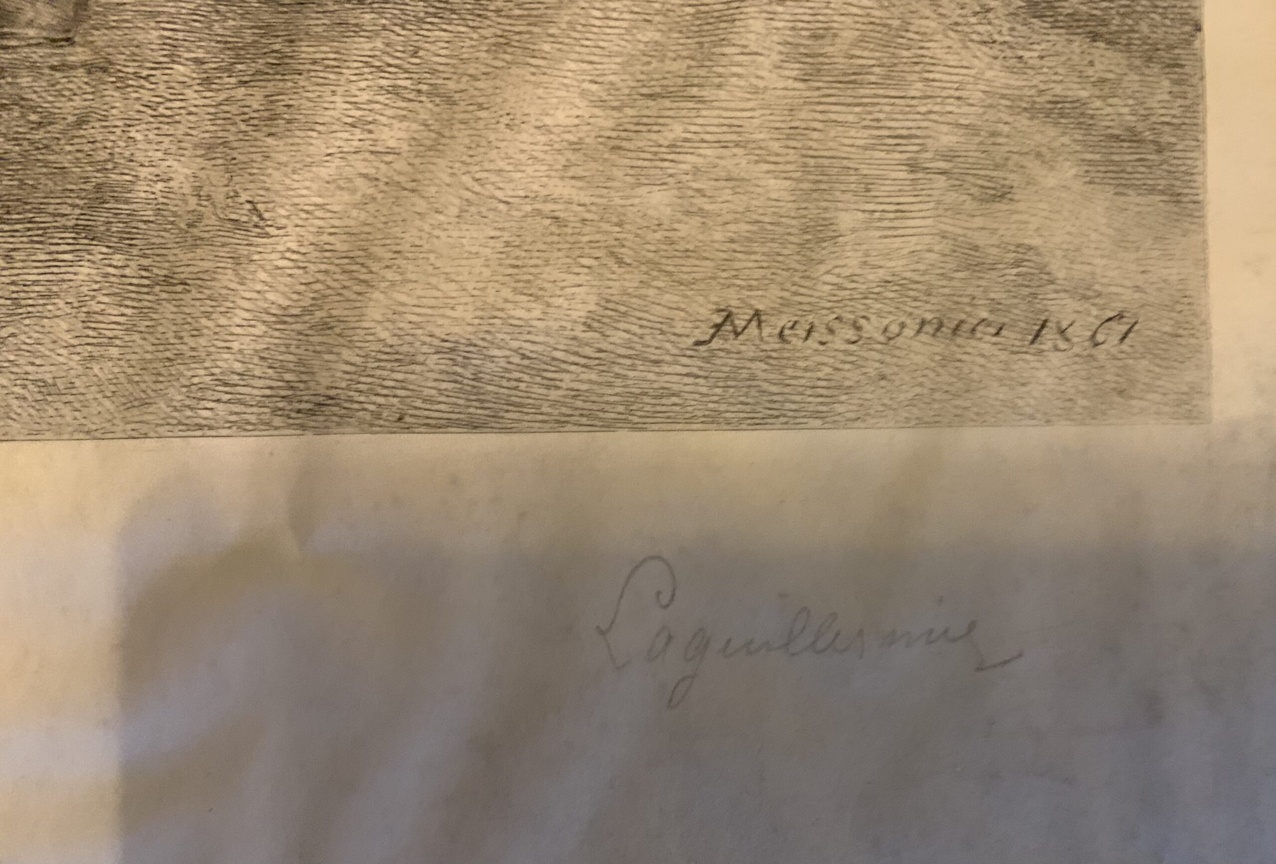 Grande et belle gravure sur parchemin représentant l’Empereur Napoléon III à cheval entouré de son état major, d’après le tableau de Ernest MEISSONIER (1815-1891) – graveur Frédéric Auguste Laguillermie (1841-1934) – Épreuve avec la signature manuscrite de Laguillermie.