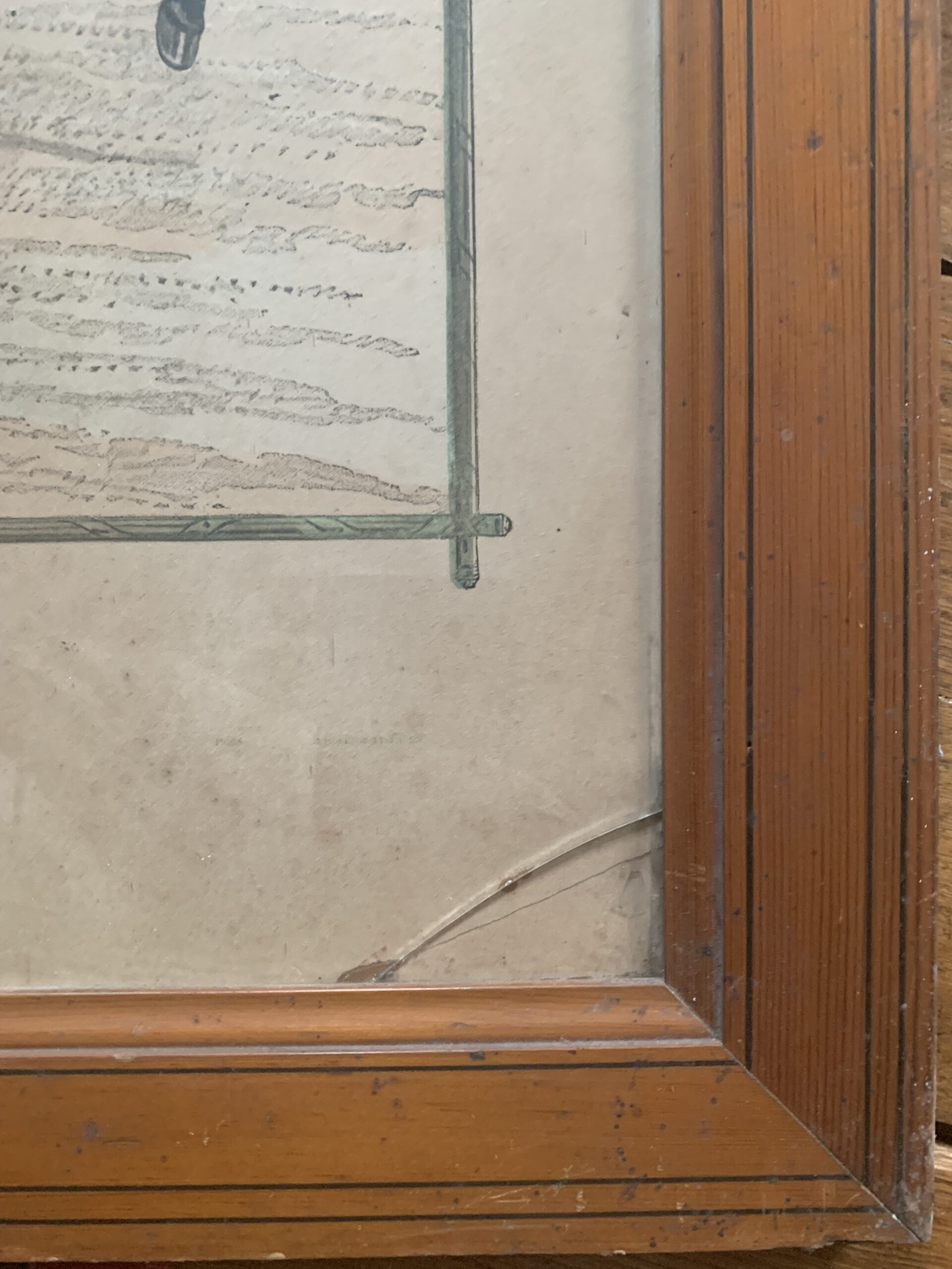 Lithographie à vue : 55 X 38 cm État : vitre petit accident en angle inférieur droit. Petites taches et piqures éparses, encadrement arrière à revoir : état sortie de grenier.