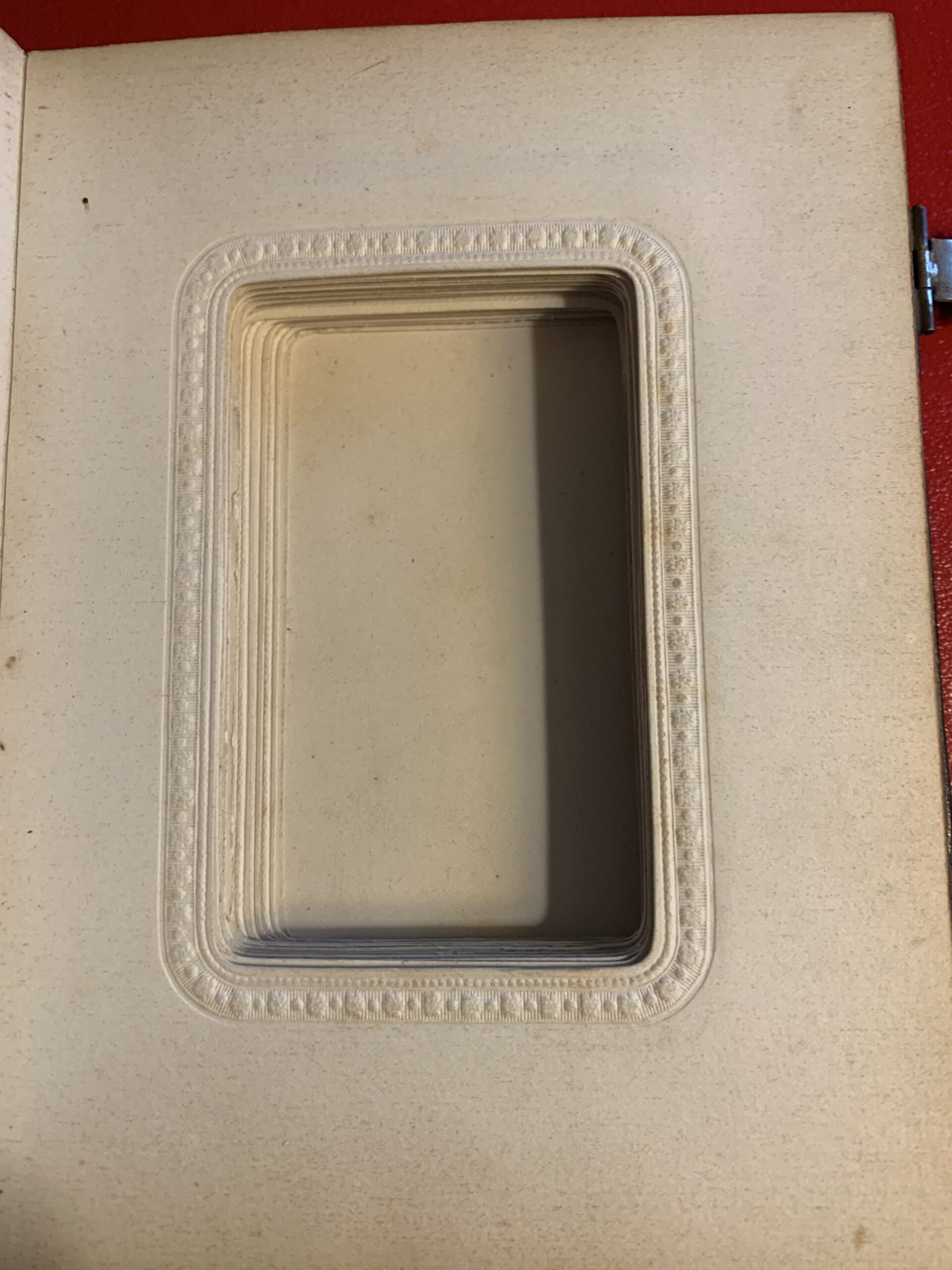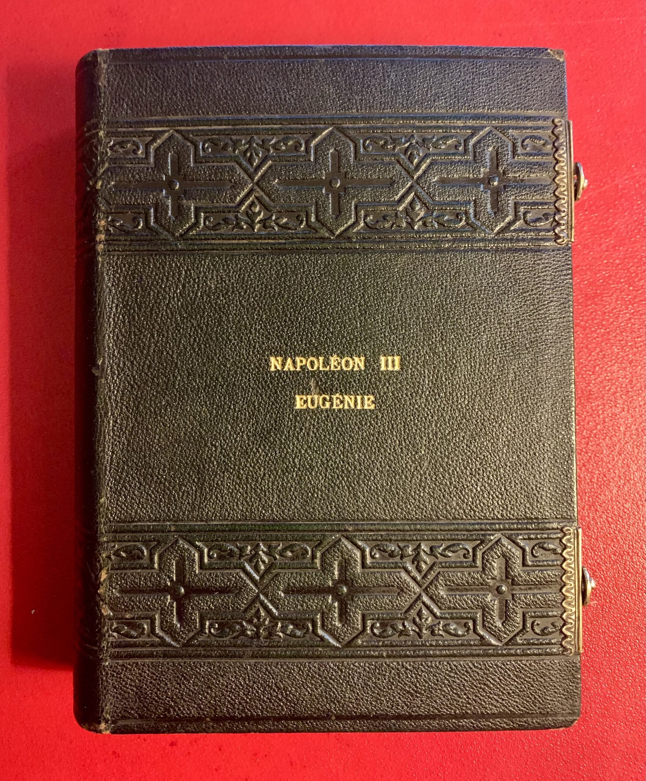 Bel et luxueux petit album pour cdv vides pouvant contenir 24 cdv 12 pages. Toutes tranches dorées, plein chagrin noir à motifspremier plat titré en lettres dorées « NAPOLÉON III EUGÉNIE » deux fermoirs en bronze argenté fonctionnant. Quatrième de couverture intérieur reproduction du Journal L’ORDRE de Granier de Cassagnac daté du 17 janvier 1873 relatant les funérailles de l’Empereur. Reliure signée Antoine Maître actif au XIXe siècle à Dijon.