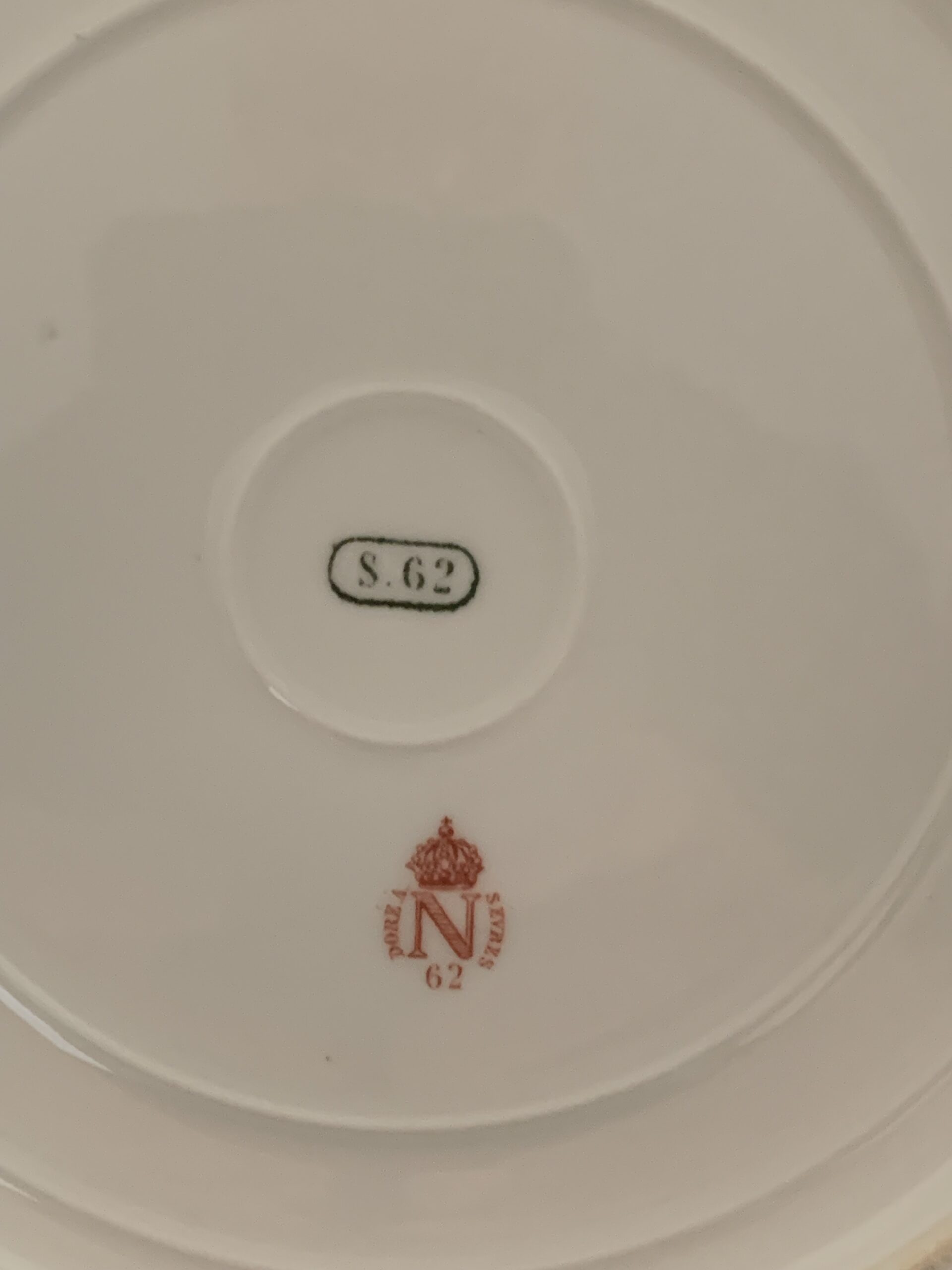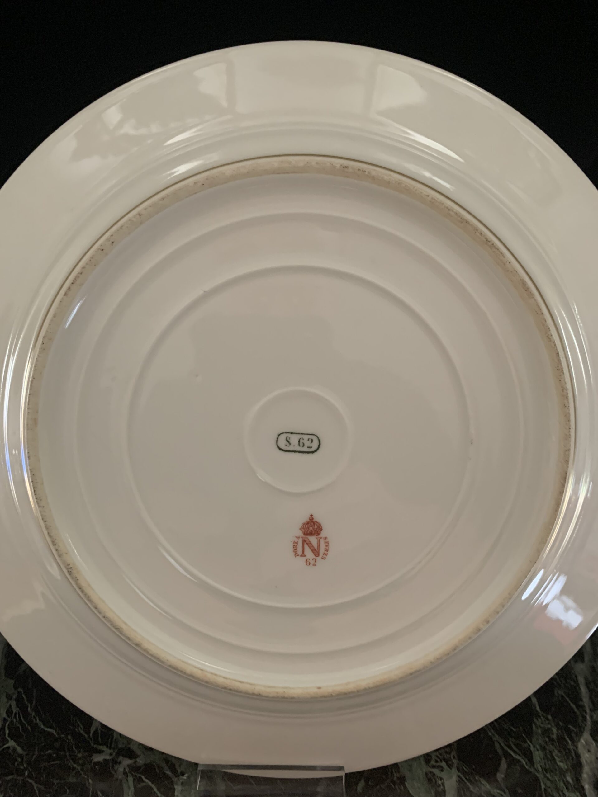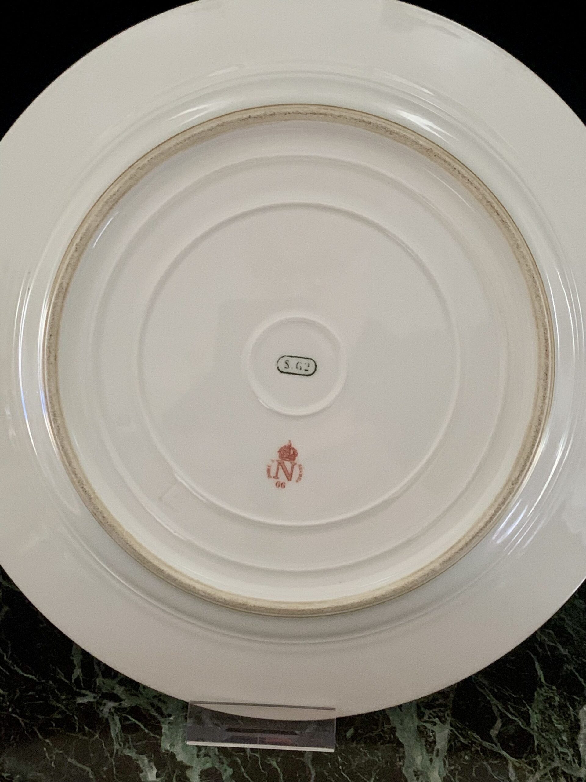 Paire d’assiettes plate à dessert – Ø : 19,5 cm, à filets et chiffre au «N» sous couronne impériale dorés.